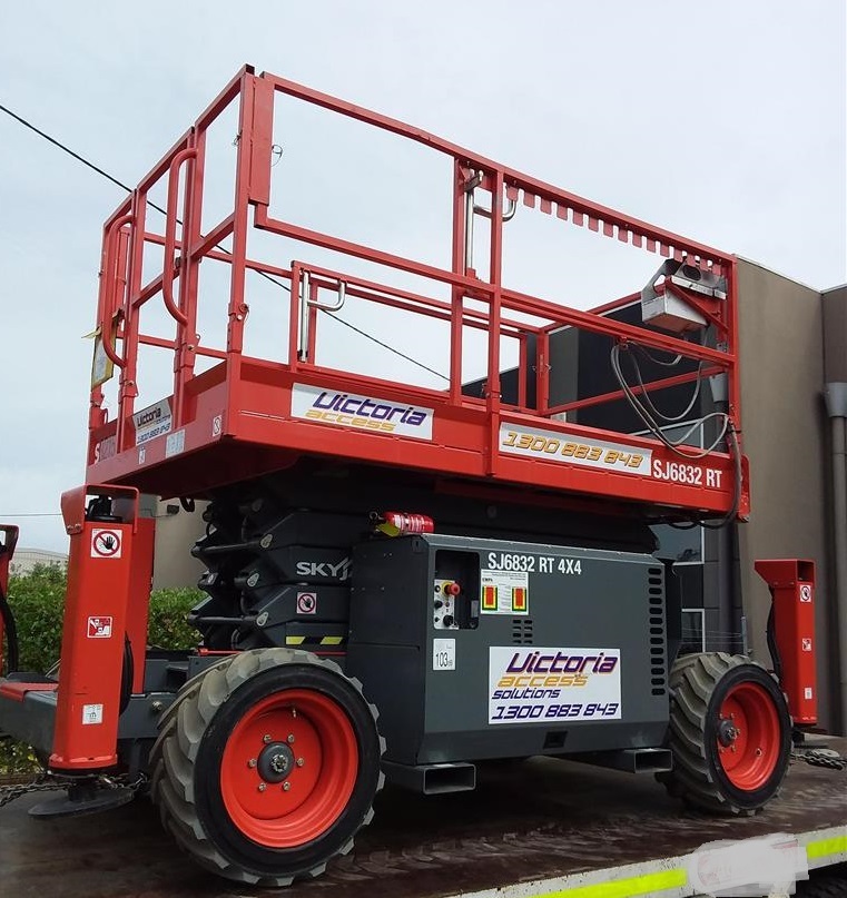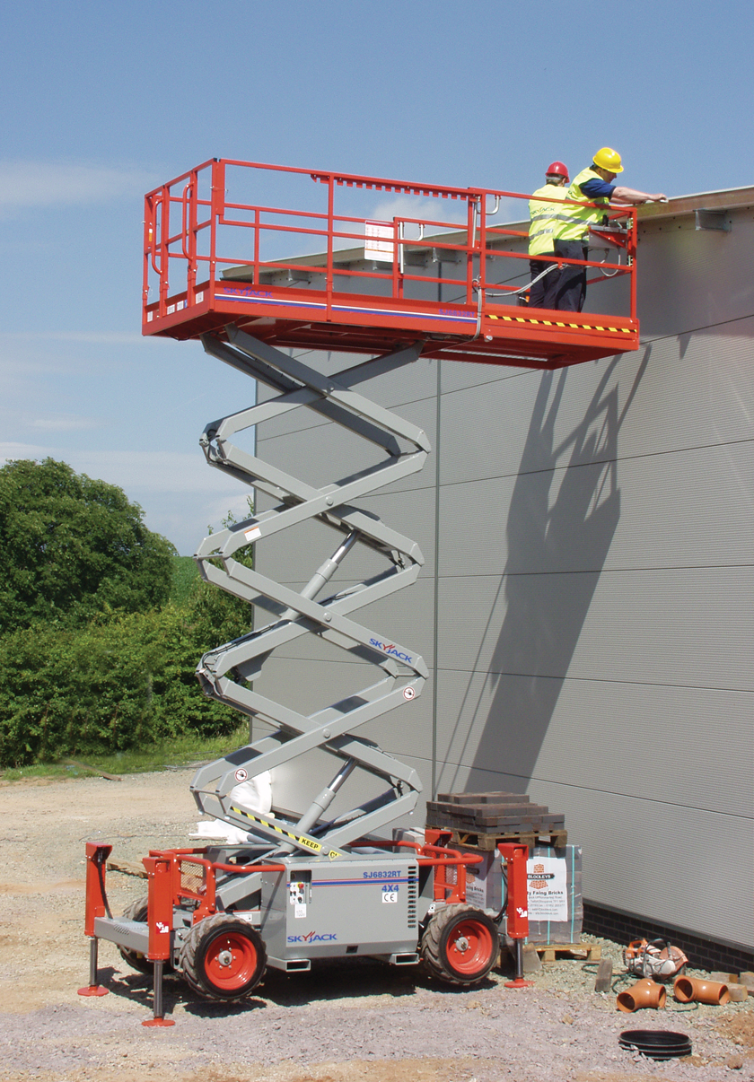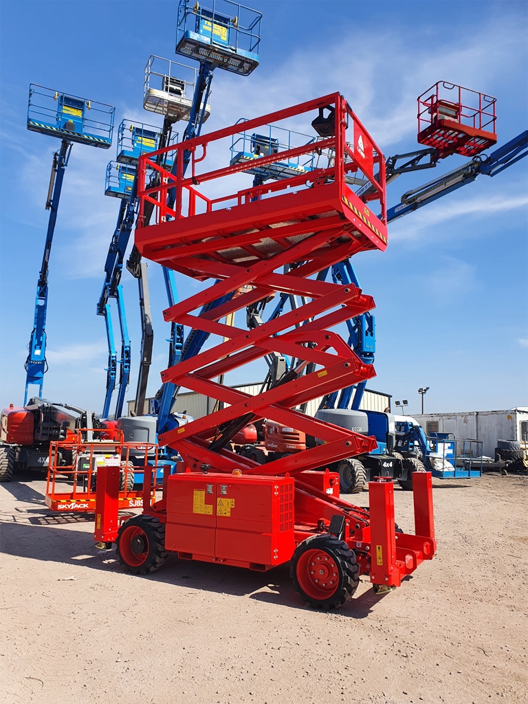 A self propelled, elevating work platform to negotiate medium-rough terrain, used on level paving or uneven surfaces for working efficiently and safely above ground. 4wd , auto level stabilisers for uneven ground and a large platform that can be extended. Suitable for indoor and out door useage.